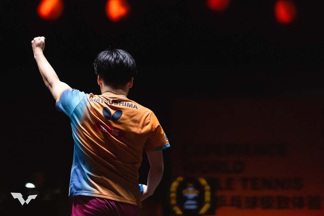 松島は2回戦で世界ランキング17位のパトリック・フランチスカ(ドイツ)を下して勝ち上がり。迎えた梁靖崑との大一番では、相手のフォアを突く巧みな攻めやラリー戦で強さを発揮し、第1ゲームを11-4、第3ゲームを11-8で奪い王手をかけた。戦術を切り替えた梁靖崑に粘られフルゲームにもつれ込んだものの、最後は8-8からの3連続ポイントで勝ち切り、喜びを爆発させた。