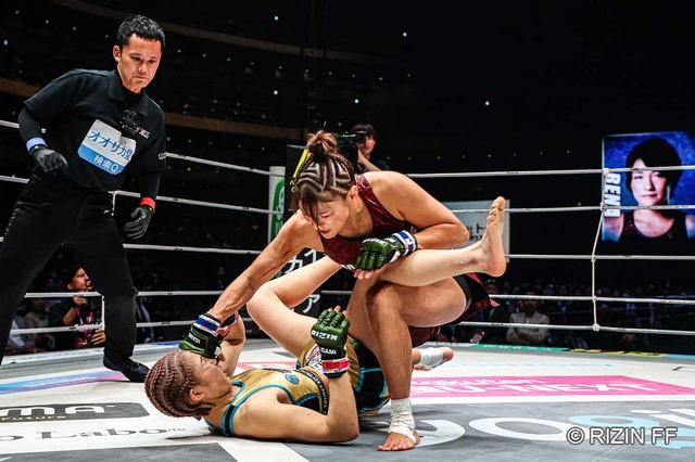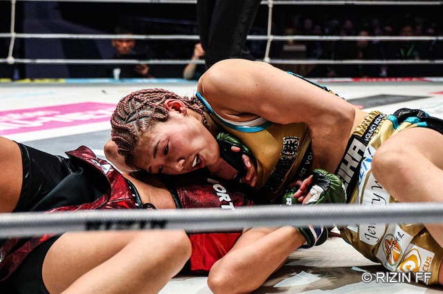 格闘技イベント「RIZIN 師走の超強者祭り」は31日、さいたまスーパーアリーナにて開催。第11試合の女子スーパーアトム級タイトルマッチは、伊澤星花が2ラウンド一本勝ち(ギロチンチョーク)でRENAに勝利した。