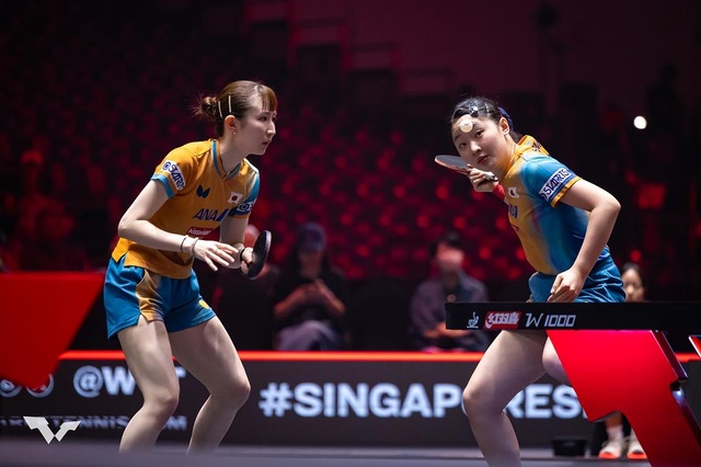 卓球の「シンガポールスマッシュ2026」は25日、女子ダブルスの準々決勝が行われ、張本美和(木下グループ)/早田ひな(日本生命)ペアはライ/ロイ・ミンイン組(シンガポール)と対戦。ゲームカウント3ー0で勝利して準決勝進出を決めた。