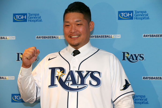 タンパベイ・レイズと契約した筒香嘉智選手が入団会見を行った。横浜DeNAベイスターズ時代と同じ背番号25のユニ...